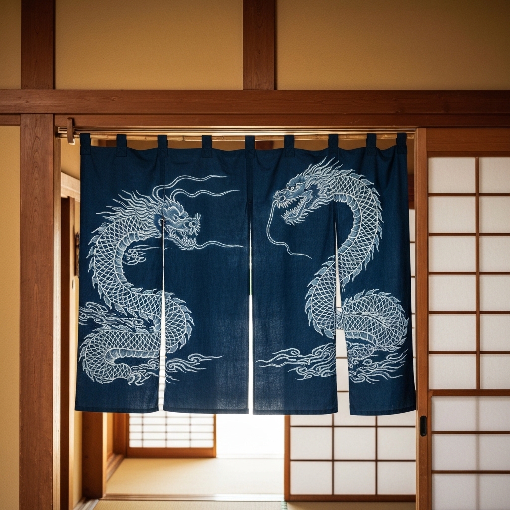 Dragon noren curtains symbolize power and good fortune in Japanese culture. Covers ryū motif variations, fabric options, and ideal placement tips.