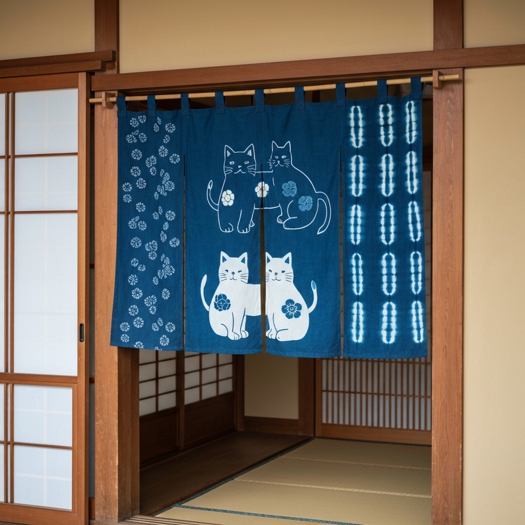 7 popular noren cat designs explained — from maneki-neko to sleeping cats. Covers symbolism, fabric choices, and sizing for Japanese door curtains.