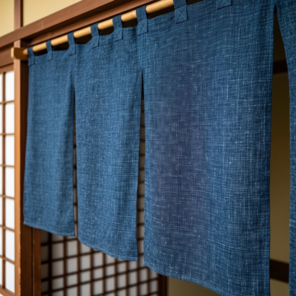 For a traditional Japanese aesthetic, embrace natural materials and classic designs. A noren crafted from asa (麻) - hemp/linen - with a katazome (型染め) pattern will blend seamlessly with tatami mats and shoji screens. Deeper indigo shades or earthy tones work well here.