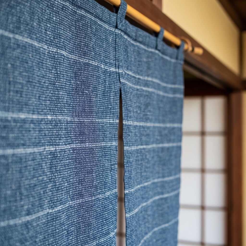 Wider openings, particularly those leading to washitsu (和室, traditional Japanese rooms) or serving as a partition between larger spaces, benefit from a wider noren. Consider using two noren side-by-side, hung on separate rods, or a single, wider panel (120-150 cm / 47-59 inches). This prevents the fabric from appearing stretched and thin.