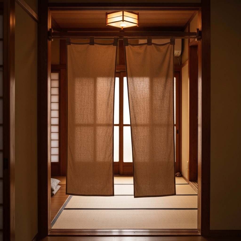 For washitsu, noren are frequently employed to define alcoves or entrances. The choice of design is often coordinated with the season or a specific event, such as a tea ceremony.