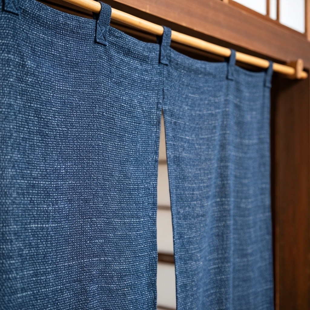 In the home office, or shosai (書斎), focus is paramount. The right noren can subtly shield you from distractions and enhance your mental clarity. Simplicity is key here. Overly elaborate designs can be visually stimulating, which is the opposite of what you want. Consider a plain noren in a calming, neutral tone. A noren made of natural asa (麻, hemp/linen) in an undyed or lightly dyed shade of beige or light grey can be incredibly effective. Its textural quality provides visual interest without being overwhelming.
